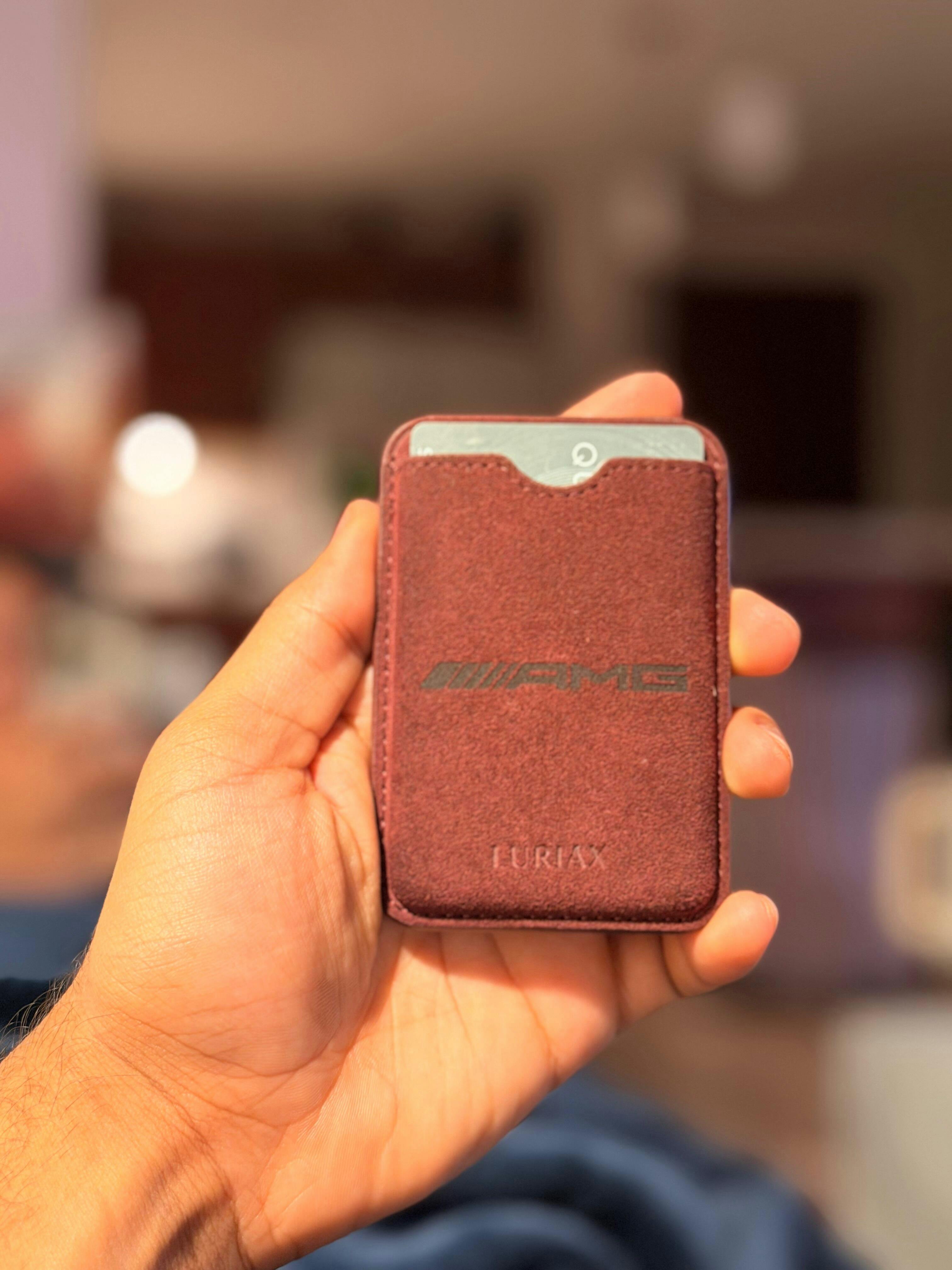 Discover the ultimate accessory for your iPhone with our premium Alcantara Suede MagSafe Wallet. This exquisite cardholder is handcrafted from luxurious Alcantara suede, known for its durability and elegance. Designed to hold up to three cards securely, our wallet is not only stain-resistant but also scratch-resistant and waterproof. Featuring a powerful magnet, it ensures a strong and reliable attachment to any MagSafe-compatible iPhone and phone cases. Elevate your daily essentials with this sleek, functional wallet designed for both style and convenience.